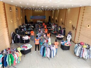 والتنسيق مع الاورمان وجمعية الفرسان بزفتى لتجهيز معرض5000 قطعة ملابس والتوزيع مجانآ