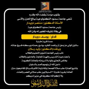 بقلوب مؤمنة بقضاء الله وقدره، تنعى جامعة سمنود التكنولوجية ببالغ الحزن والأسى: