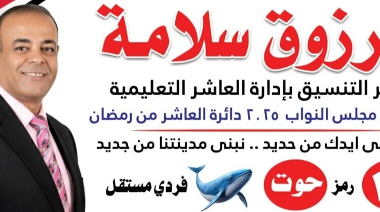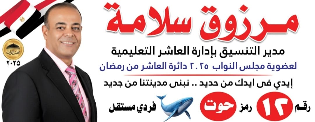 من يعرفه يدرك أن العاشر لا تراه مجرد مرشح، بل أحد أبنائها المخلصين الذين أفنوا العمر في خدمة الناس، والذود عن الحق، وصون كرامة المهنة والوطن ولهذا تتقدم جميع عائلة ابو شبكه بالعاشر من رمضان ومحافظة الشرقية بتأييد والدعم الكامل لمرشح مجلس النواب الأستاذ مرزوق سلامة مرشح مجلس النواب دائرة العاشر من رمضان رمز الحوت رقم (١٢ )متمنيا له الفوز الساحق بعضوية مجلس النواب.