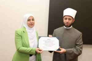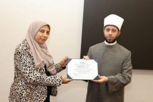 كرم الدكتور أسامة الأزهرى وزير الأوقاف عددا من القيادات النسائية المتميزة بالوزارة فى ختام البرنامج التدريبى المشترك بين وزارة الأوقاف والمعهد القومى للحوكمة والتنمية المستدامة الذى استهدف تأهيل القيادات النسائية وتمكينهن من أدوات الإدارة الحديثة والحوكمة الرشيدة وذلك بمقر وزارة الأوقاف بالعاصمة بحضور عدد من قيادات الوزارة