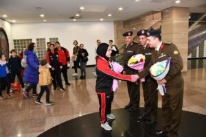 وقد عبرت اللاعبة / سارة سمير عن شكرها وتقديرها للقوات المسلحة التى وفرت لها كافة أوجه الرعاية بما يعظم من قدراتها الرياضية لتحقيق الإنجازات ، وكان فى إستقبال اللاعبة فور وصولها إلى أرض الوطن وفد رسمى من جهاز الرياضة للقوات المسلحة إحتفاءاً بما حققته اللاعبة بتلك البطولة الكبرى .