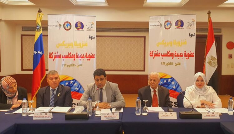نظم برنامج شؤون لاتينية ومنتدى أوراسيا وبريكس بمركز الحوار للدراسات السياسية والإعلامية بالتعاون مع سفارة فنزويلا يوم الاثنين 14 أكتوبر 2024، ندوة بعنوان “فنزويلا وبريكس .. عضوية جديدة ومكاسب مشتركة”، بحضور لفيف من المختصين بالشؤون اللاتينية وشؤون بريكس وعدد من نواب مجلس النواب والشيوخ ورجال الأعمال المصريين والسفراء؛ حيث أكد اللواء حمدي لبيب رئيس مؤسسة الحوار للدراسات والبحوث الإنسانية، في معرض كلمته إلى أن فنزويلا شهدت طفرة حقيقية في النمو خلال السنوات الأخيرة، على المستويين الداخلي والخارجي، رغم كل التحديات التي تواجهها جراء العقوبات الامريكية المفروضة عليها، مشيرًا إلى أن انضمام فنزويلا لتكتل بريكس سيمثل فرصة حقيقية لتعزيز مكانة فنزويلا ودور بريكس دوليًا وإقليمًا.