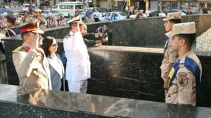 قامت الدكتورة/ جاكلين عازر – محافظ البحيرة، واللواء/ محمد عمارة – مساعد وزير الداخلية مدير أمن البحيرة، والعميد أ.ح/ حسام شبل – المستشار العسكري للمحافظة، بوضع إكليل من الزهور على النصب التذكاري للجندي المجهول بميدان جلال قريطم بمدينة دمنهور، تخليداً لذكرى شهداء الوطن الأبرار الذين ضحوا بأرواحهم فداءً لمصرنا الغالية ودفاعاً عن أمنها وسلامتها.