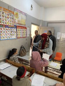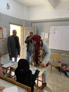 للصف الرابع الابتدائي حيث أكدت سيادتها خلال المتابعة على سرعة ازالة اى معوقات تواجه الطلاب اثناء اداء الامتحانات كما حرصت على دخول عدد من اللجان للتأكد من توزيع النماذج الثلاثة على الطلاب واشادت بالانضباط داخل اللجان وحسن سير أعمال الامتحانات بالمدرسة