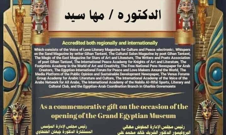 ويأتي هذا التكريم ليعكس الدور الريادي الذي قامت به الدكتورة مها سيد في دعم الحركة الأدبية، وإثراء الساحة الثقافية بأعمالها وإسهاماتها التي تركت أثرًا بارزًا في المجتمع العربي.