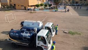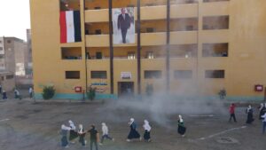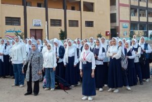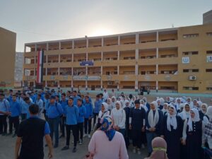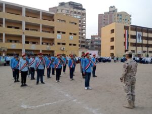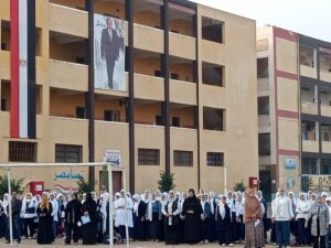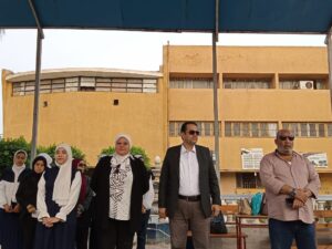 وكيل الوزارة يحضر طابور المدرسة النسيجية الصناعية المشتركة بطنطا، ويشهد تجربة إخلاء المدرسة
