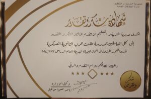 تنفيذا لتوجيهات الأستاذ الدكتور رضا حجازي، وزير التربية والتعليم والتعليم الفني، والأستاذ الدكتور طارق رحمي، محافظ الغربية، وفي إطار تقدير جهود المدارس المتميزة في العمل، قام اليوم ناصر حسن، وكيل وزارة التربية والتعليم بالغربية، بتكريم مدير مدرسة طلعت حرب الثانوية العسكرية للبنين، التابعة لإدارة غرب المحلة، باسم جميع العاملين بالمدرسة، وذلك لجهودهم المشكورة في أعمال الصيانة البسيطة بالمدرسة للعام الدراسي 2023 / 2024